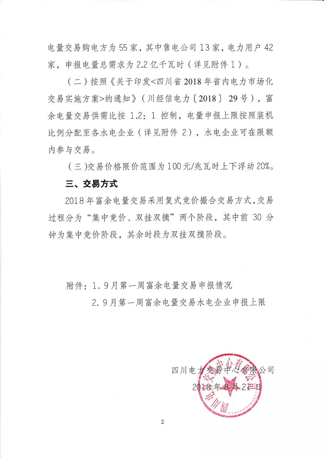 公告 | 四川關(guān)于開展2018年9月第一周富余電量交易的公告