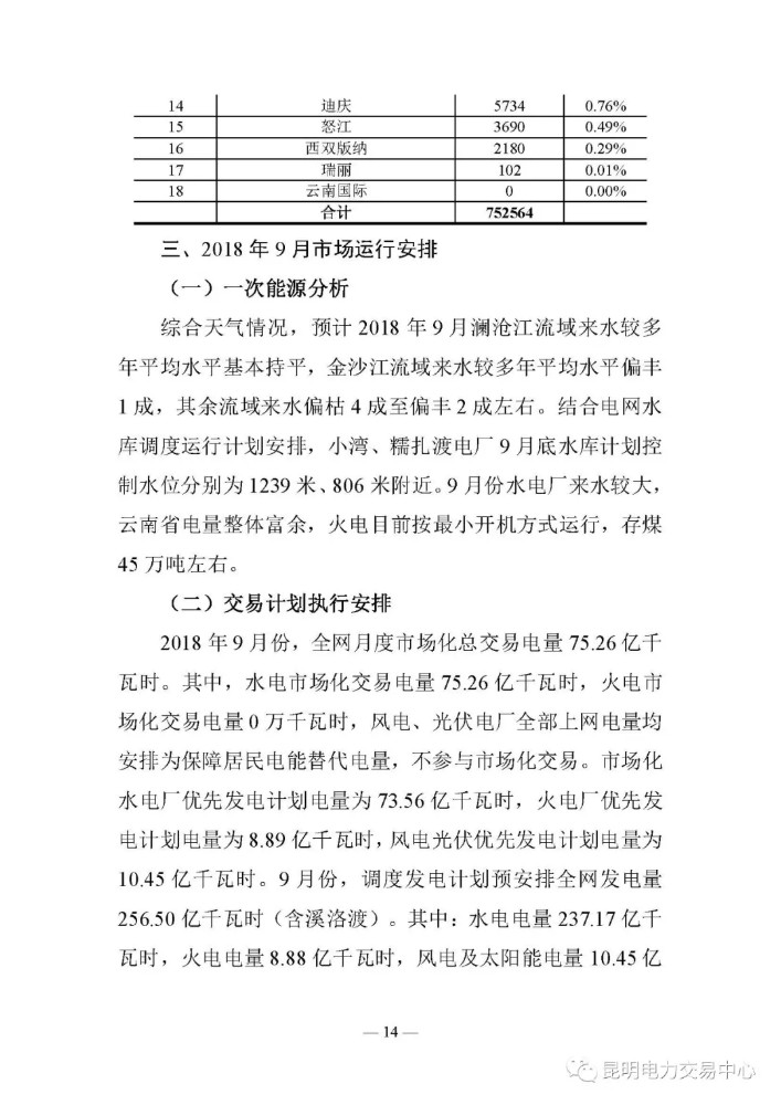 云南2018年9月電力交易月報:44家售電公司代理用戶參與交易