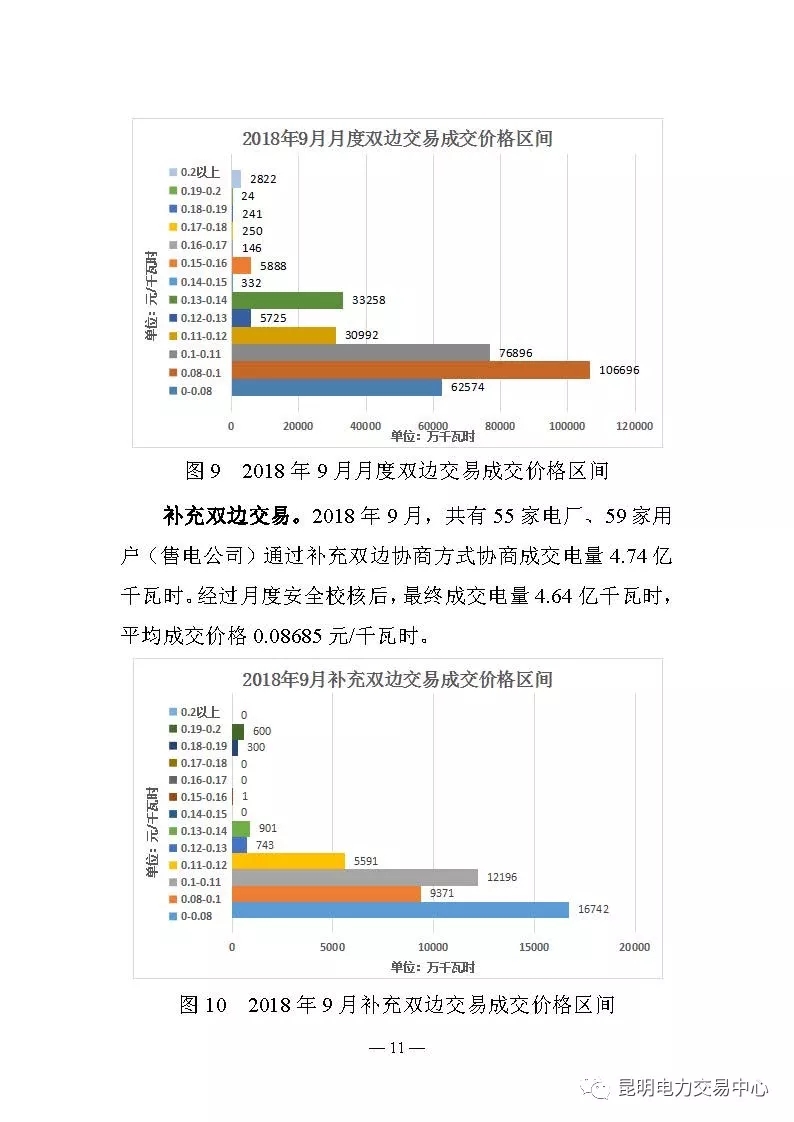 2018年9月,省內市場成交電量75.26億千瓦時,同比增長21.92%,年度、月度交易電量比例為50.3%、49.7%,平均成交價0.11577元/千瓦時。