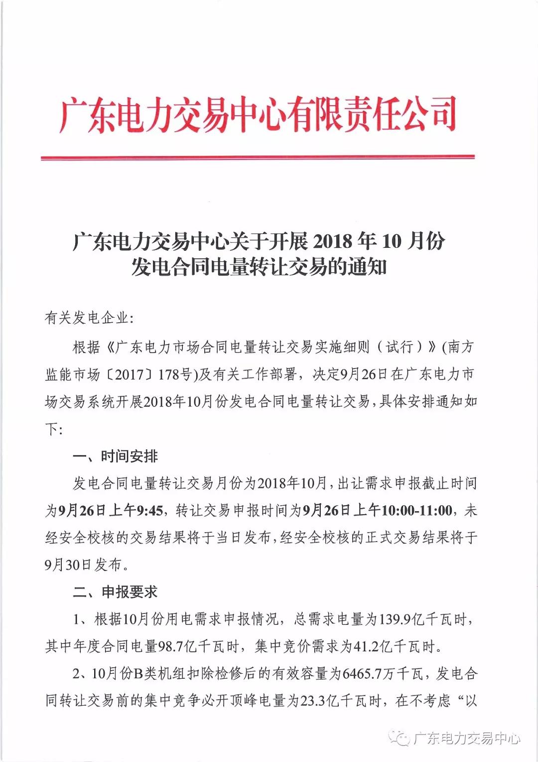 通知 | 廣東關(guān)于開展2018年10月份發(fā)電合同電量轉(zhuǎn)讓交易的通知