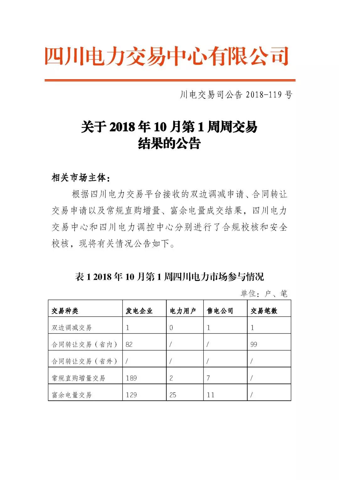 公告 | 四川關(guān)于2018年10月第1周周交易結(jié)果的公告