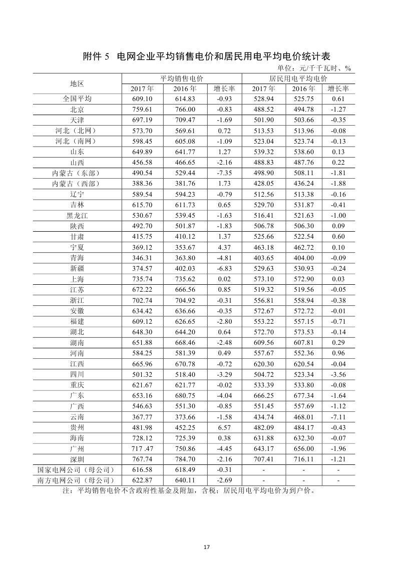 國家能源局發(fā)布《關(guān)于2017年度全國電力價格情況監(jiān)管通報》。為全面反映全國各地電力價格信息及變化情況,更好地實施價格監(jiān)管,切實維護好電力市場秩序,國家能源局組織對全國主要電力企業(yè)2017 年度價格情況進行了統(tǒng)計分析,形成本報告。