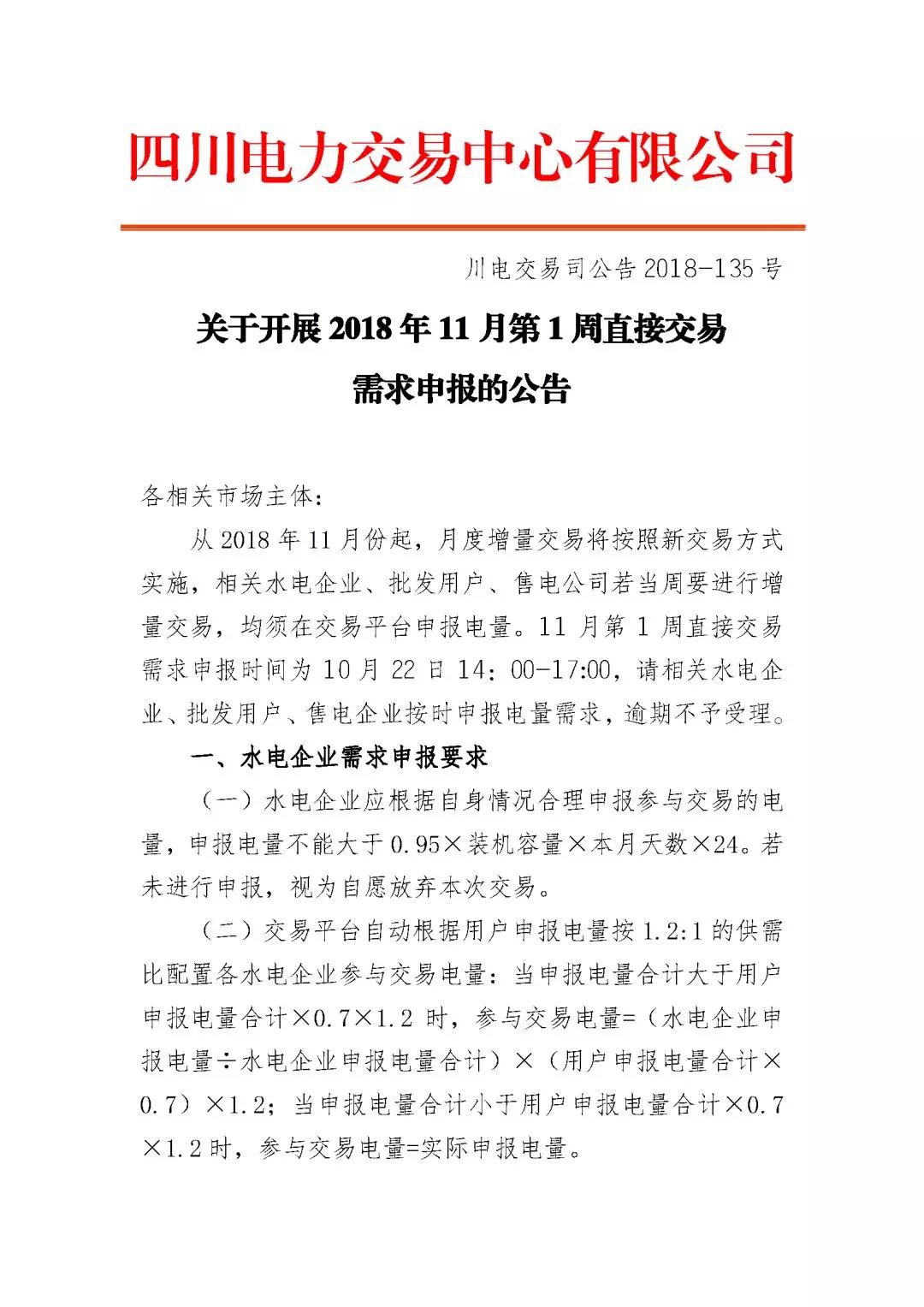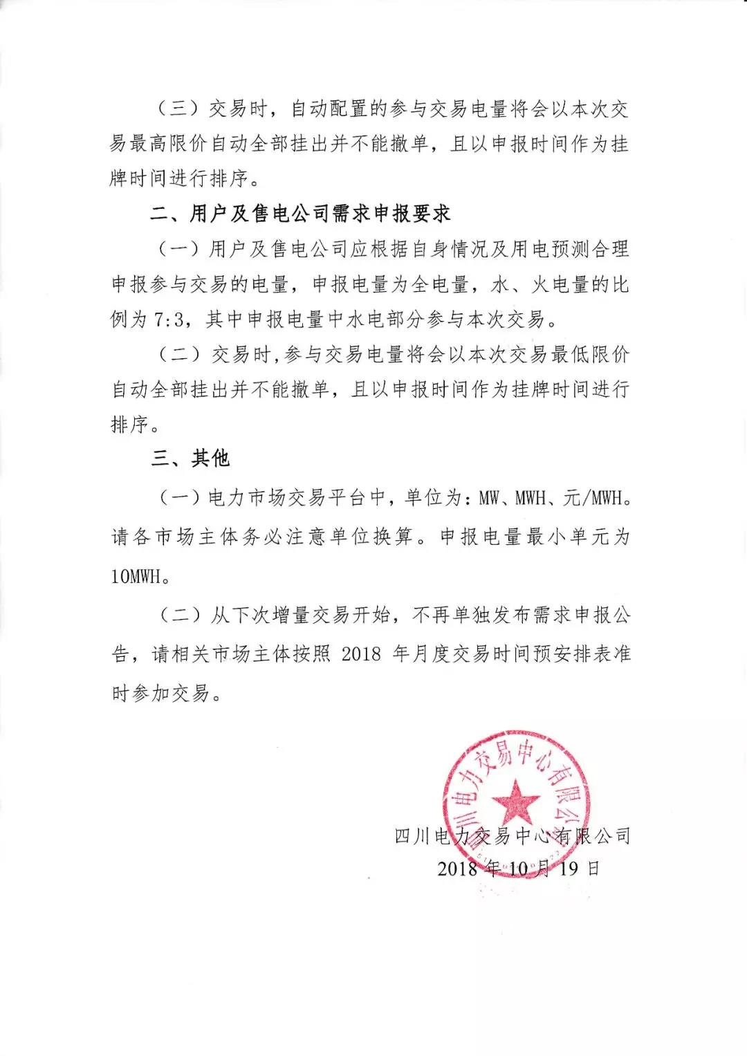 公告 | 四川關(guān)于開展2018年11月第1周直接交易需求申報的公告
