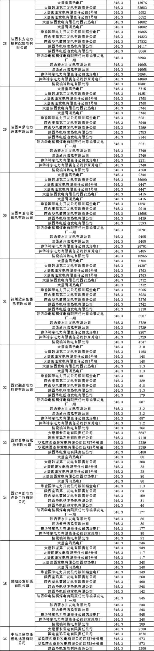 現(xiàn)將我省下半年集中競(jìng)價(jià)模式電力直接交易成交結(jié)果清單予以公布,請(qǐng)陜西省電力公司、陜西省地方電力(集團(tuán))公司、陜西電力交易中心有限公司組織各發(fā)電企業(yè)與用戶做好合同網(wǎng)簽及后續(xù)落實(shí)工作。