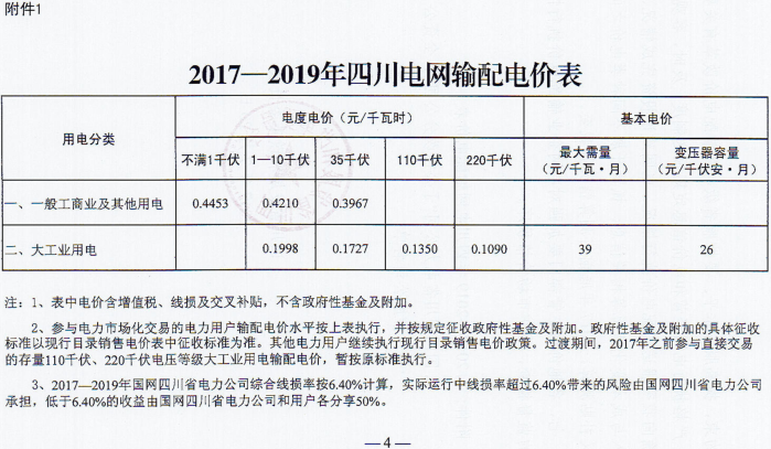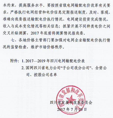 四川電網(wǎng)2017—2019年輸配電價(jià)發(fā)布