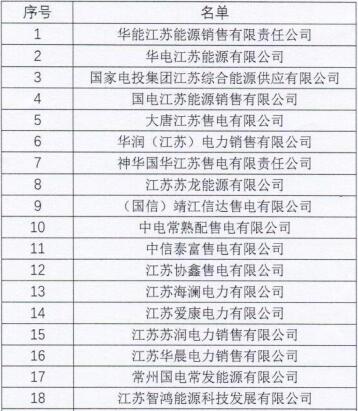 江蘇第一批36家售電公司開始公示
