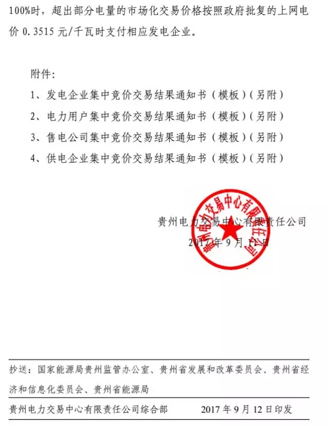 貴州2017年10月集中競價省內(nèi)直接交易公告