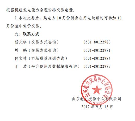 2017年9月15日,山東電力交易中心發(fā)布《山東省2017年10月份電力直接交易(雙邊協(xié)商)公告》。山東將于2017年9月18日14:00-17:00開展2017年10月份電力直接交易,交易結(jié)束后,購電方10月份仍存在用電缺額的可參加1