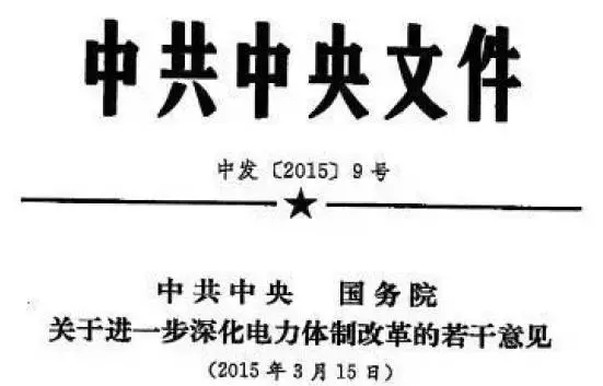 2015年3月15日,中共中央、國(guó)務(wù)院發(fā)布《關(guān)于進(jìn)一步關(guān)于進(jìn)一步深化電力體制改革的若干意見》(9號(hào)文),為下一步電改定了調(diào)。