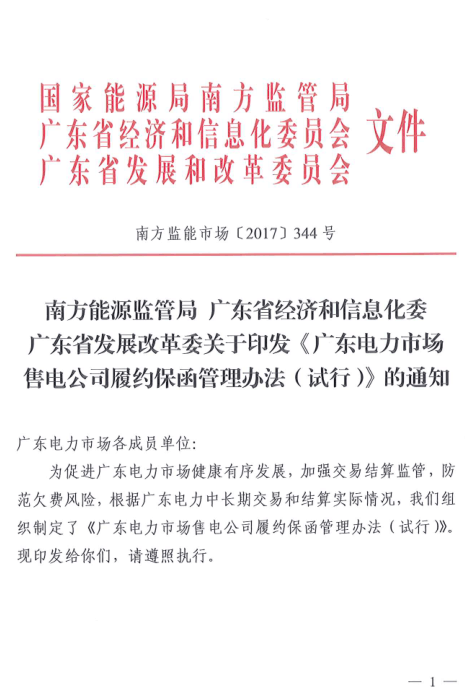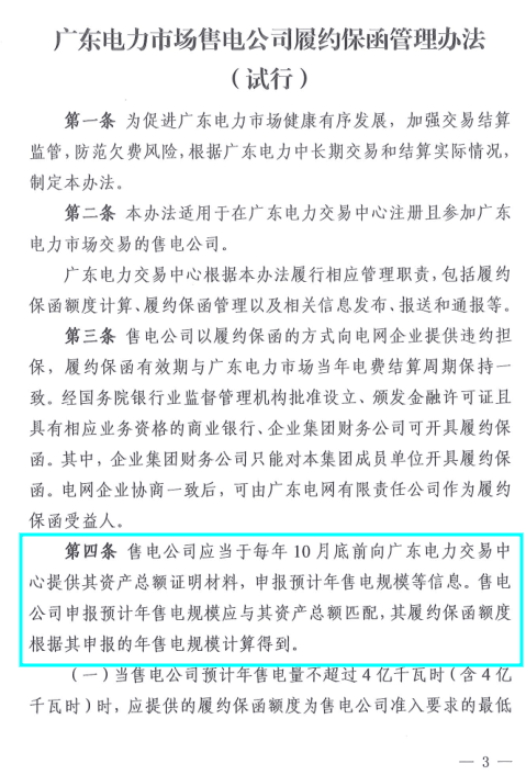 廣東售電公司注意了!《廣東電力市場售電公司履約保函管理辦法(試行)》已經(jīng)出臺