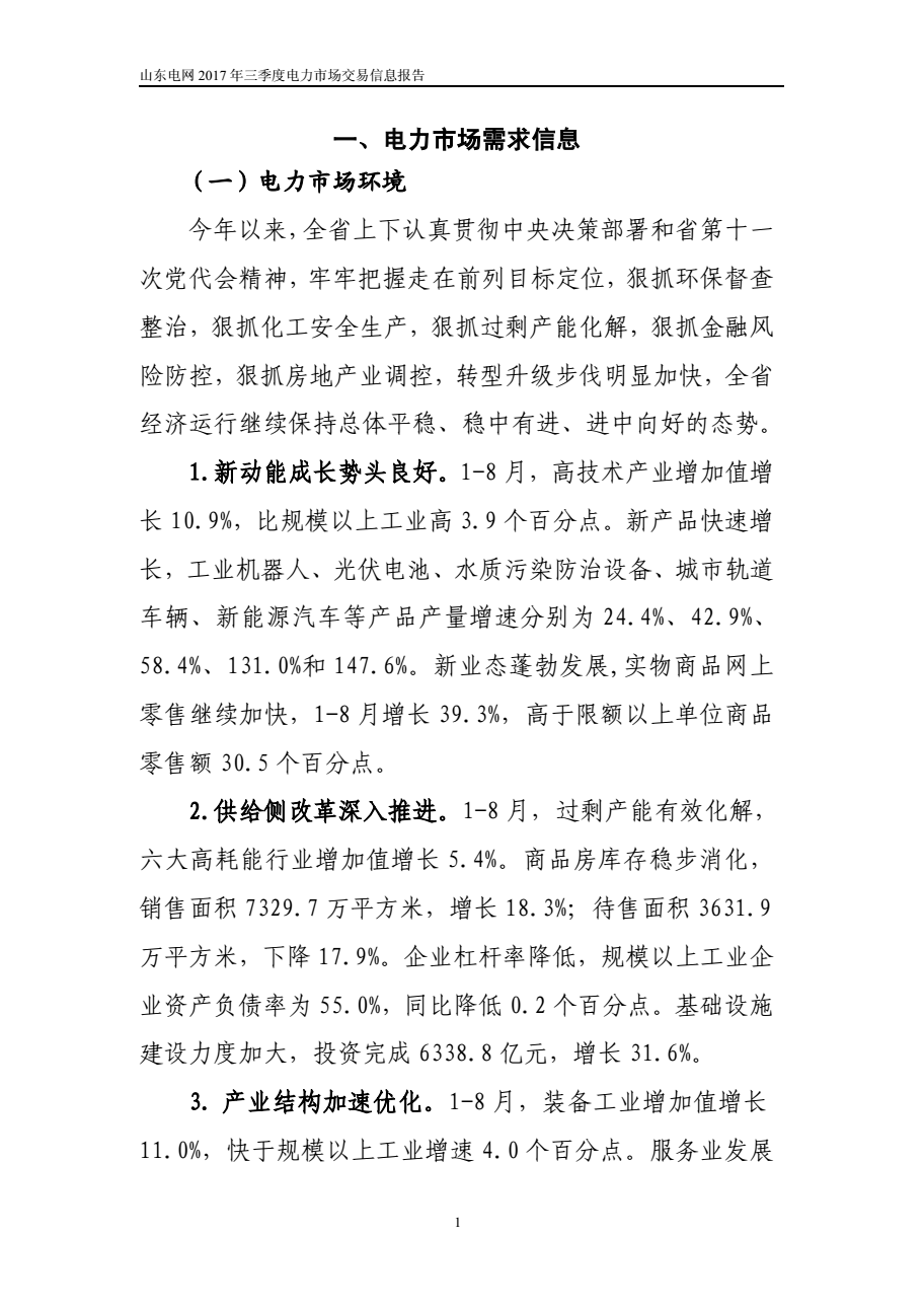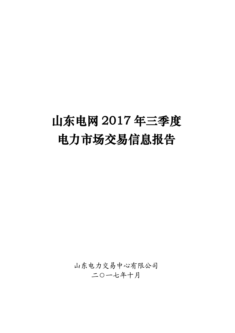 山東電網(wǎng)2017年三季度電力市場交易信息報告