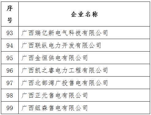 關(guān)于公布7家列入廣西售電公司目錄企業(yè)名單的通知