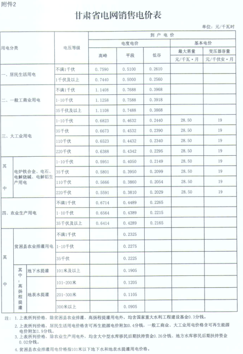 2.甘肅省電網(wǎng)銷售電價表