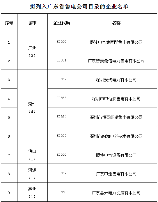 廣東省經(jīng)濟(jì)和信息化委關(guān)于公布第十二批列入售電公司目錄企業(yè)名單的通知