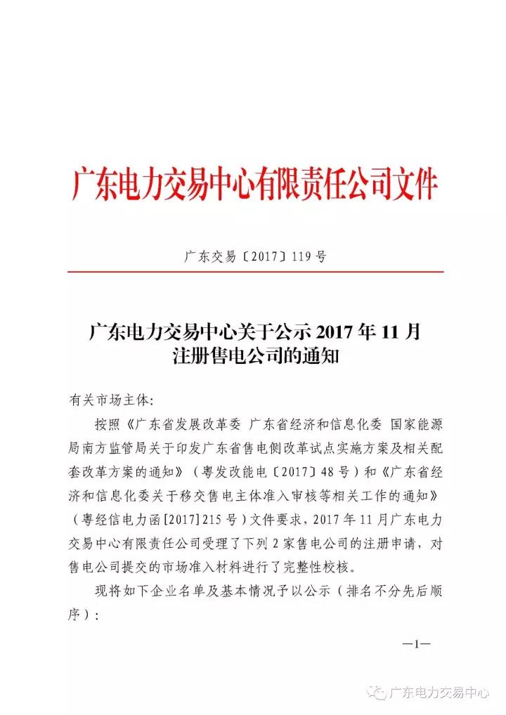 為做好售電公司的準入審核等相關(guān)工作,廣東電力交易中心現(xiàn)對11月注冊申請的2家售電公司進行公示,公示正文如下: