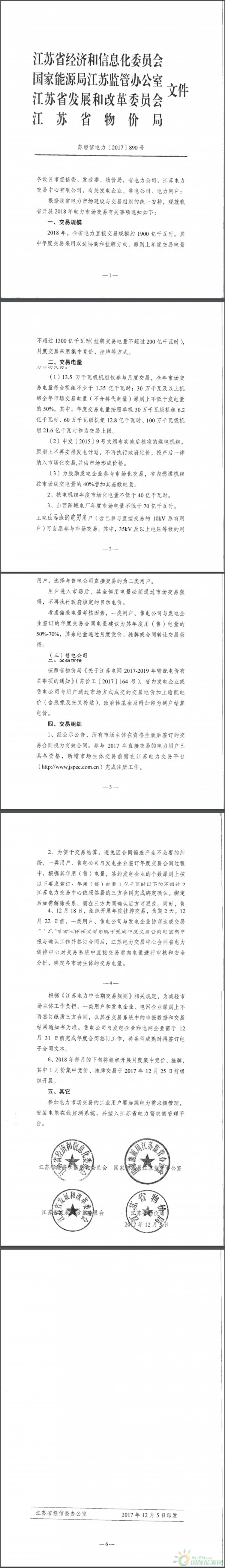 關(guān)于開展江蘇省2018年電力市場交易的通知