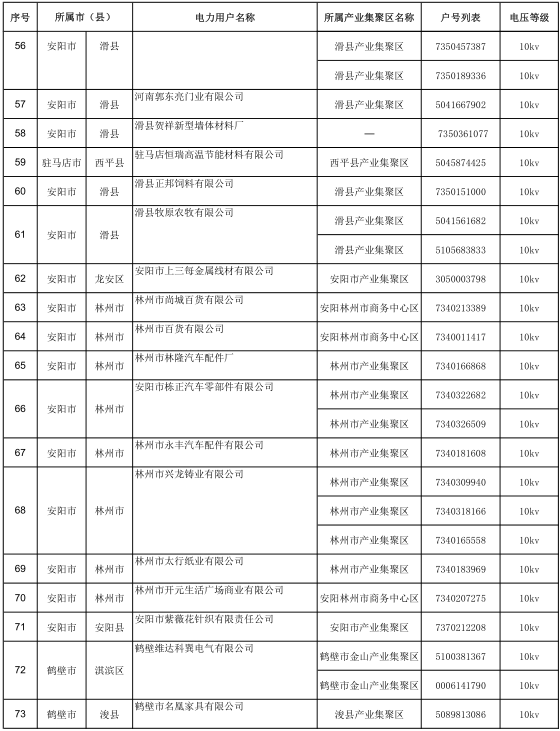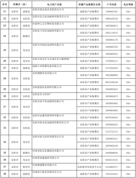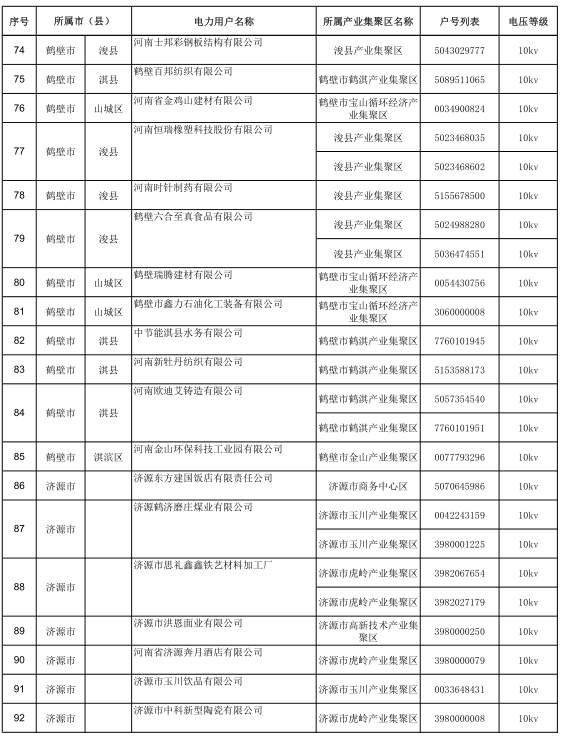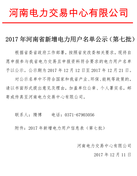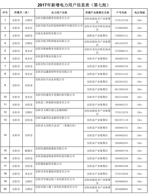 2017年河南省770家新增電力用戶公示名單(第七批)