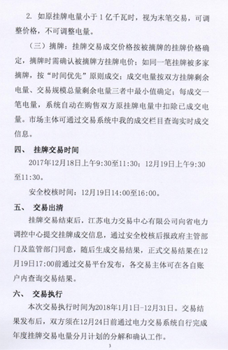 江蘇電力交易中心發(fā)布2018年江蘇電力市場年度掛牌交易公告