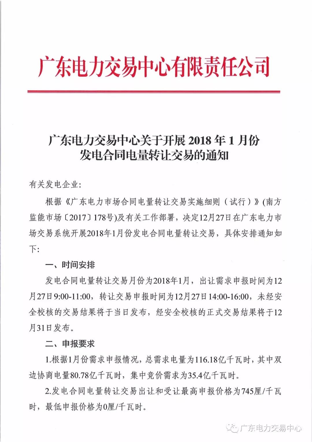 需求電量116.18億千瓦時(shí) 廣東2018年1月發(fā)電合同電量轉(zhuǎn)讓交易27日展開(kāi)