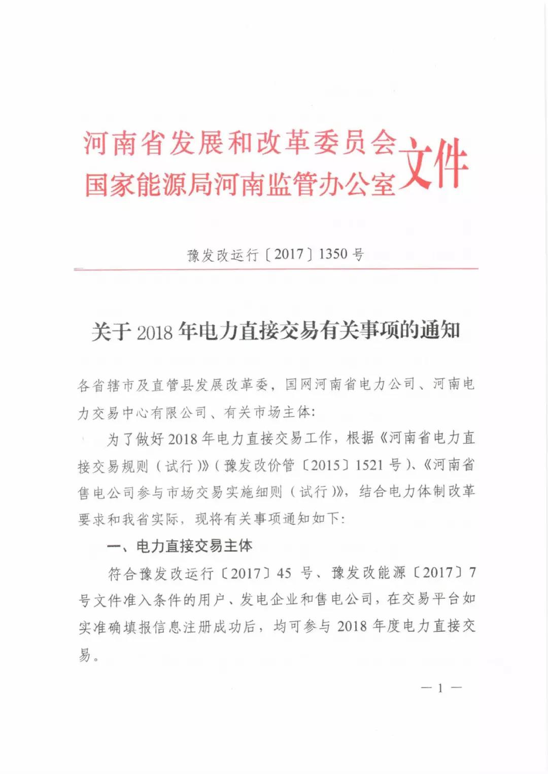 河南2018年電力直接交易有關(guān)事項(xiàng)發(fā)布:采取年度雙邊協(xié)商交易、月度集中撮合交易兩種方式進(jìn)行