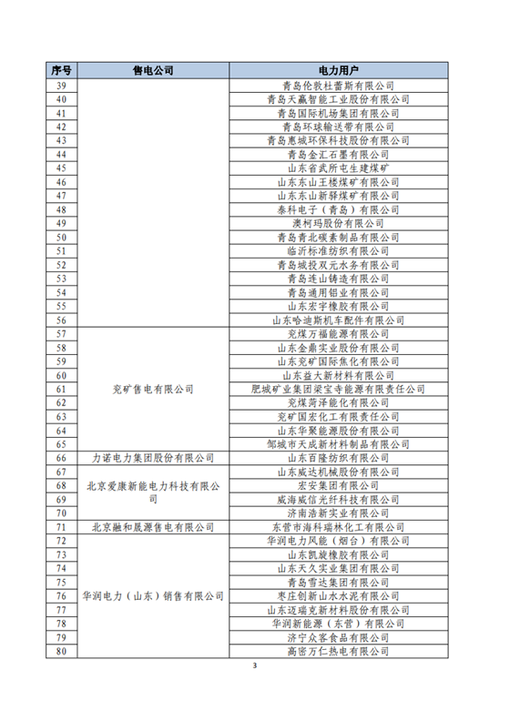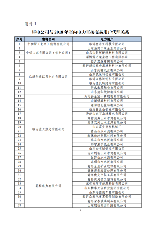 山東2018年省內(nèi)電力交易用戶與售電公司代理關(guān)系及自主參與直接交易用戶名單