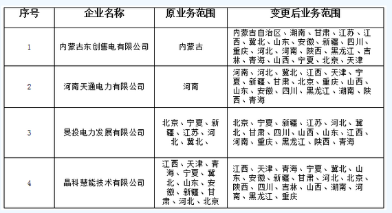 按照國(guó)家發(fā)改委、國(guó)家能源局《售電公司準(zhǔn)入與退出管理辦法》的要求,北京電力交易中心受理了下列4家涉及山西省有關(guān)業(yè)務(wù)售電公司的業(yè)務(wù)范圍變更申請(qǐng),并對(duì)售電公司提交的市場(chǎng)準(zhǔn)入申請(qǐng)材料進(jìn)行了完整性核驗(yàn)且予以公示。按照北京電力交易中心要求,現(xiàn)在我省予以公示。