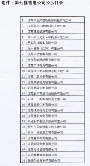 江蘇公示第七批26家售電公司