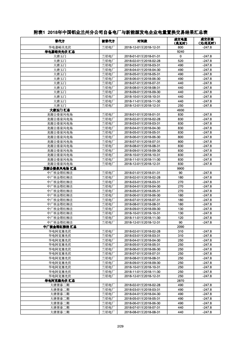《附表1 2018年中國鋁業(yè)蘭州分公司自備電廠與新能源發(fā)電企業(yè)電量置換交易結(jié)果匯總表(18億) 》