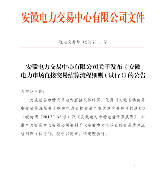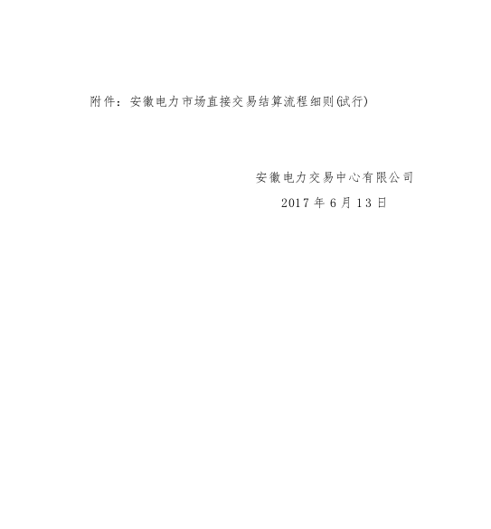 附件:安徽電力交易中心有限公司關(guān)于發(fā)布《安徽電力市場直接交易結(jié)算流程細(xì)則(試行)的公告 皖電交易綜〔2017〕1號