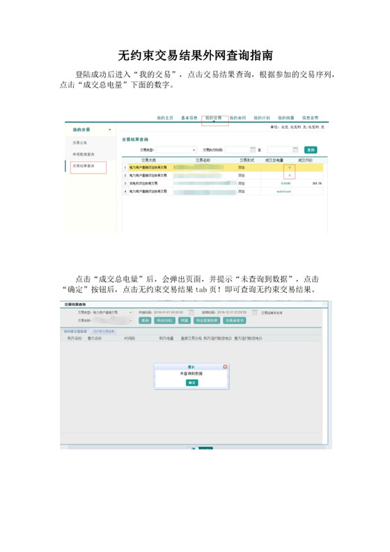 2018年月(季)度電力直接交易第3場(chǎng)電力用戶與火電集中競(jìng)價(jià)交易無(wú)約束出清結(jié)果已經(jīng)發(fā)布,請(qǐng)相關(guān)市場(chǎng)主體登錄電力交易平臺(tái)查看結(jié)果。《無(wú)約束交易結(jié)果外網(wǎng)查詢指南》可在“市場(chǎng)服務(wù)”欄下載。