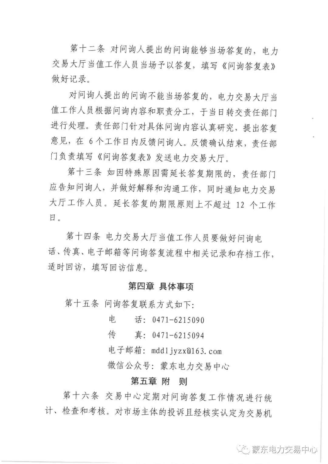 內(nèi)蒙古東部電力交易中心有限公司問詢答復(fù)制度