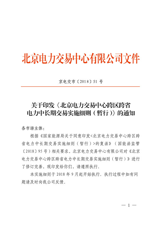 北京電力交易中心跨區(qū)跨省電力中長期交易實施細則(暫行)