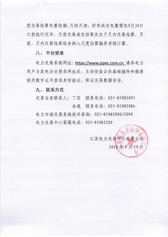 江蘇2018年9月月內(nèi)合同電量轉(zhuǎn)讓及發(fā)電權(quán)交易9月25日展開