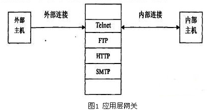 應(yīng)用層網(wǎng)關(guān)也叫應(yīng)用層防火墻或應(yīng)用層代理防火墻,通常被描述為第三代防火墻。當(dāng)受信任網(wǎng)絡(luò)上的用戶打算連接到不受信任網(wǎng)絡(luò)上的服務(wù)時(shí),該應(yīng)用被引導(dǎo)至防火墻中的代理服務(wù)器。由于在代理服務(wù)中,內(nèi)外各個(gè)站點(diǎn)之間的連接被切斷了,都必須經(jīng)過代理方才能相互連接,所以說代理服務(wù)器可以偽裝成網(wǎng)絡(luò)上實(shí)際的服務(wù)器而不會(huì)被察覺。它可以對(duì)請(qǐng)求進(jìn)行評(píng)估,并根據(jù)一套單個(gè)網(wǎng)絡(luò)服務(wù)的規(guī)則決定允許或拒絕該請(qǐng)求。應(yīng)用層網(wǎng)關(guān)代理防火墻工作原理如圖1所示。