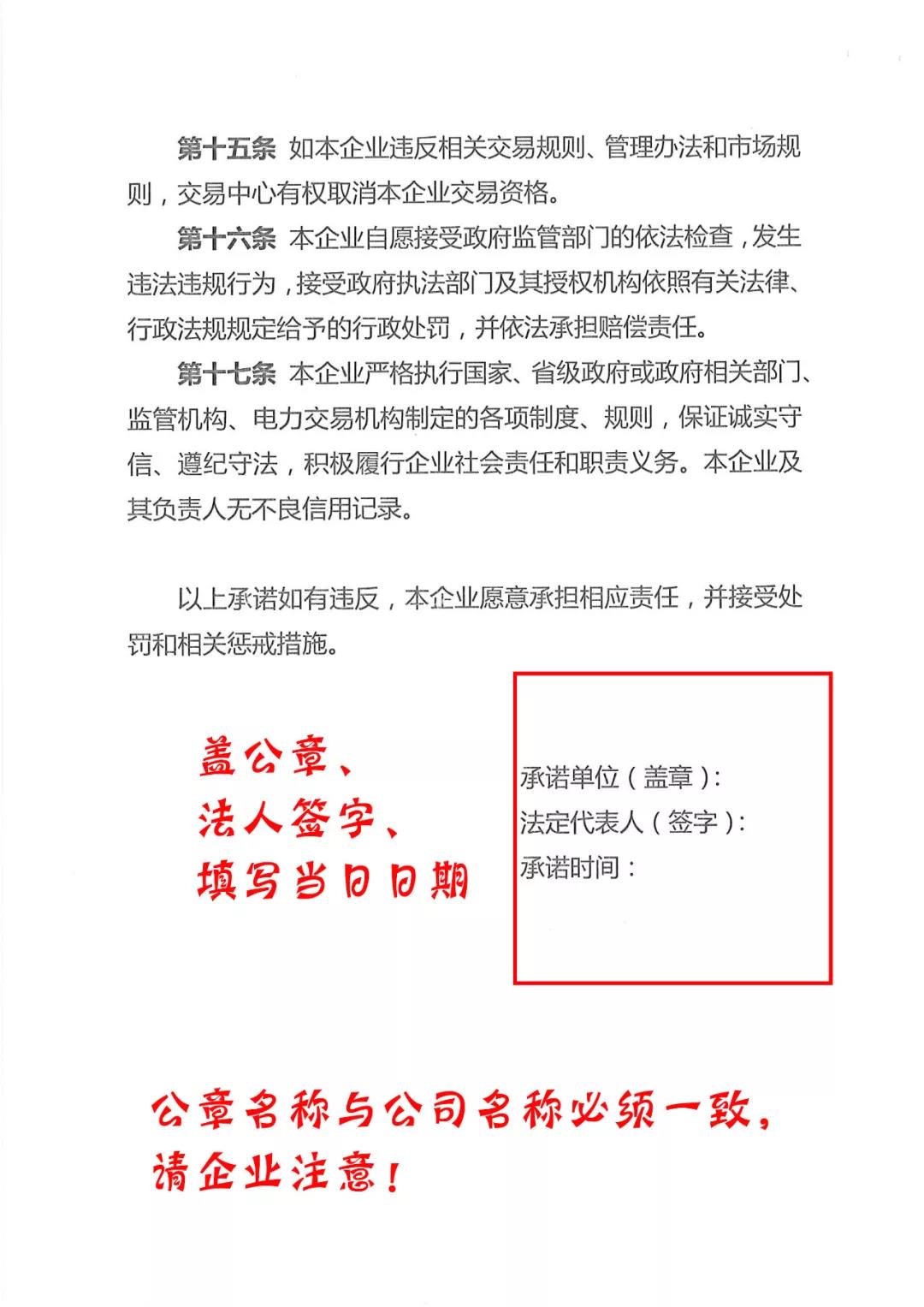 3.蓋章區(qū)域詳見下方蓋章說明操作流程:附件2(申請書):右下角公司名稱蓋章。附件3(承諾書):承諾單位處蓋章、法定代表人簽名或加蓋法人簽章,承諾時間請?zhí)顚懮w章當(dāng)日時間。附件4(交易平臺使用協(xié)議):封面企業(yè)名稱處蓋章、簽署頁蓋章、法人簽字或加蓋法人章并填寫日期。