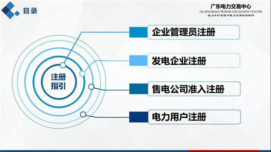 從廣東電力交易中心處獲悉,南方(以廣東起步)電力現貨市場培訓班(第一期)培訓課件(第五部分)中含有《廣東電力市場管理注冊流程操作指引》,包含企業(yè)管理員注冊、發(fā)電企業(yè)注冊、售電公司準入注冊、電力用戶注冊四大部分。