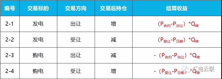 根據(jù)售電公司在中長期合約轉讓交易中根據(jù)4種不同的交易行為,其交易結果以及結算可由下表表示: