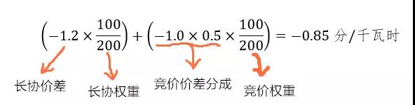 舉個例子:一家公司當(dāng)月用電200萬千瓦時,其中100萬千瓦時為長協(xié)電量,約定價差為-1.2分/千瓦時,售電公司不分成;另外100萬千瓦時為競價電量,當(dāng)月平臺出清價差為-1分/千瓦時,用戶和售電公司5:5進(jìn)行分成。那么計算方法如下: