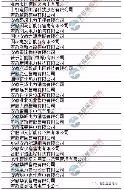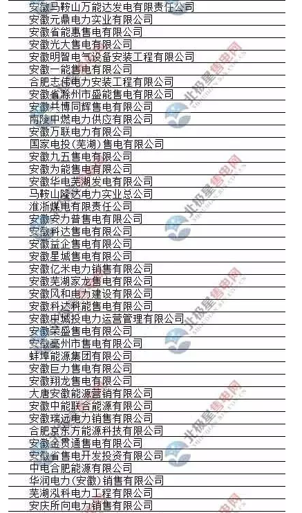 售電公司名單(截至2017.2.15全國已準(zhǔn)入電力市場主體)