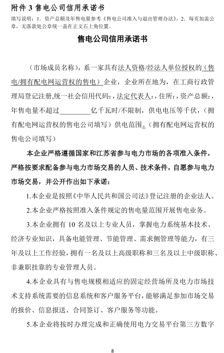 江蘇省售電公司9月8日起放開(kāi)注冊(cè)