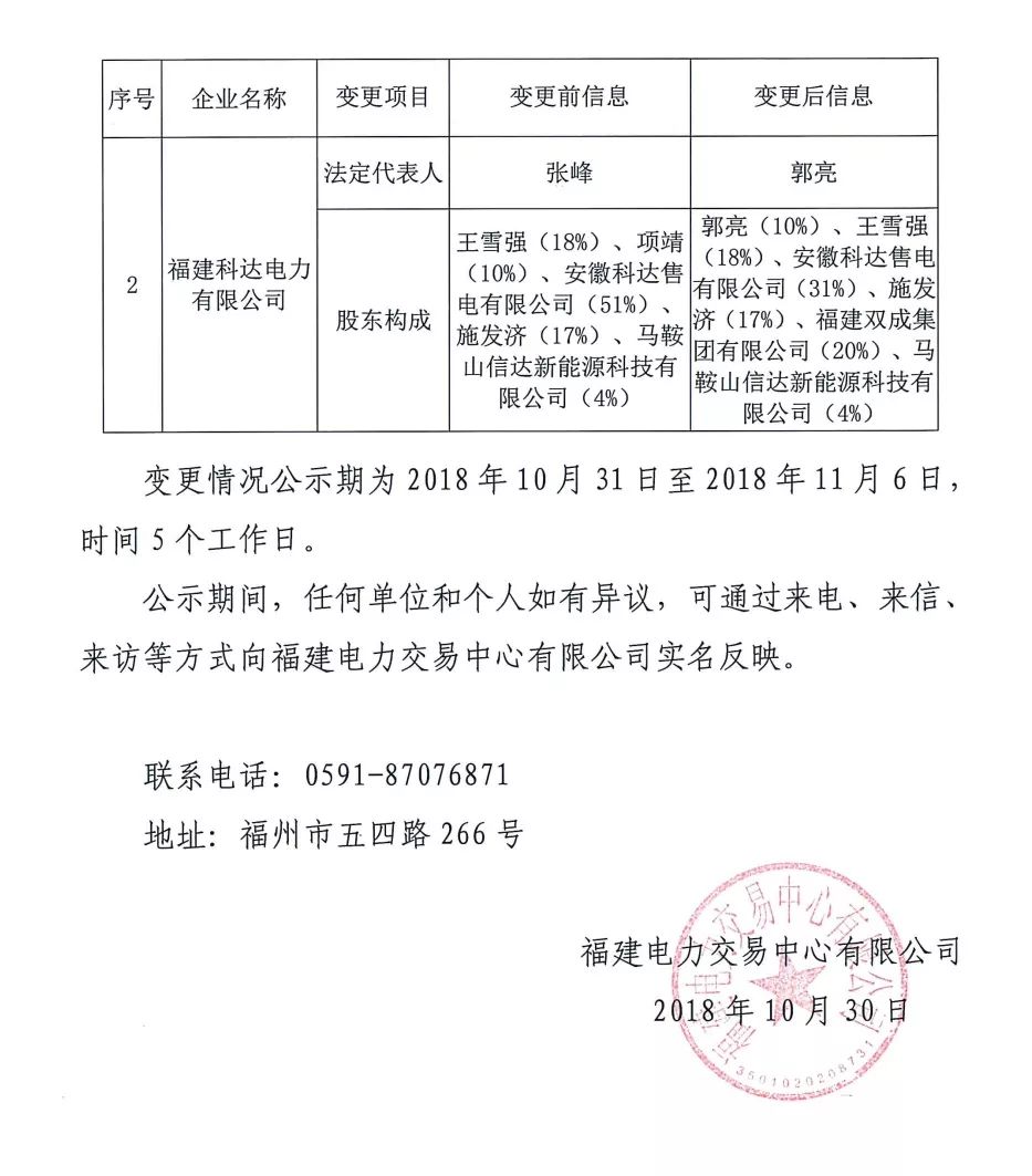 福建電力交易中心有限公司關于公示售電公司注冊信息變更情況的公告