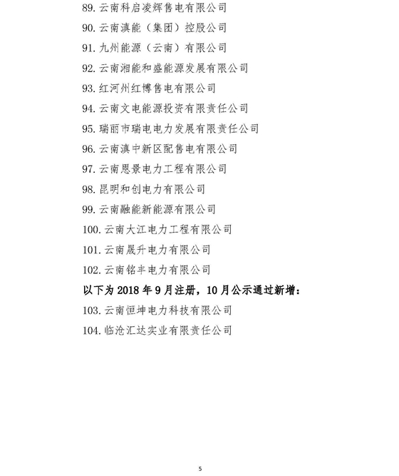 云南2018年10月售電企業(yè)目錄:56家售電公司已履行信用保證