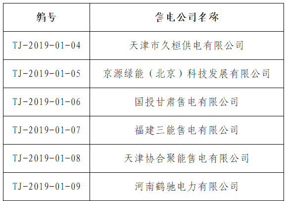 按照天津市發(fā)展改革委、市工業(yè)和信息化委《天津市售電公司準(zhǔn)入與退出管理實(shí)施細(xì)則(試行)》(津發(fā)改規(guī)〔2018〕9號)的要求,天津電力交易中心有限公司受理了下列售電公司的注冊申請,對售電公司提交的市場準(zhǔn)入申請材料進(jìn)行了完整性形式審查,現(xiàn)將企業(yè)名單及基本情況予以公示。
