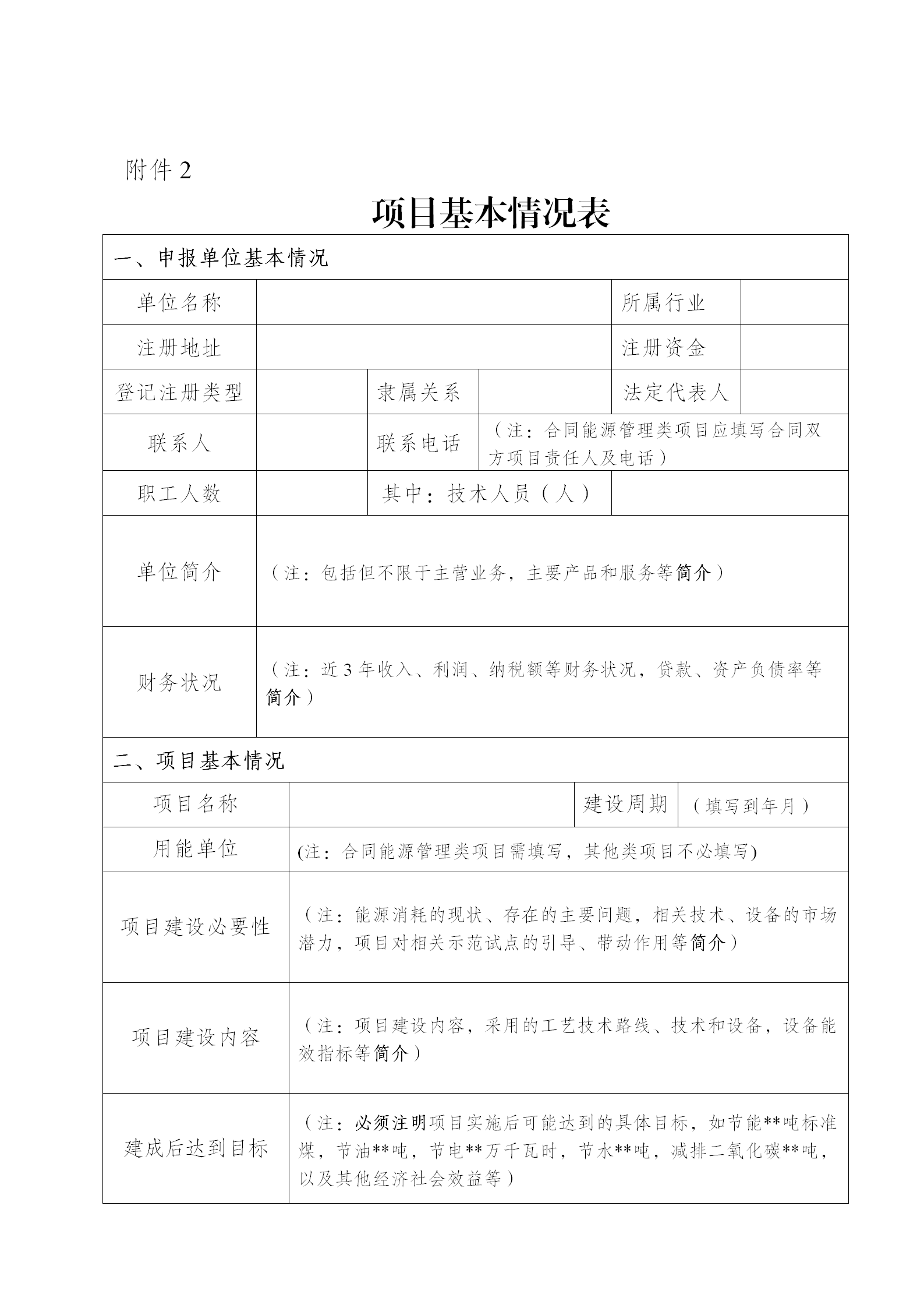2.項(xiàng)目基本情況表