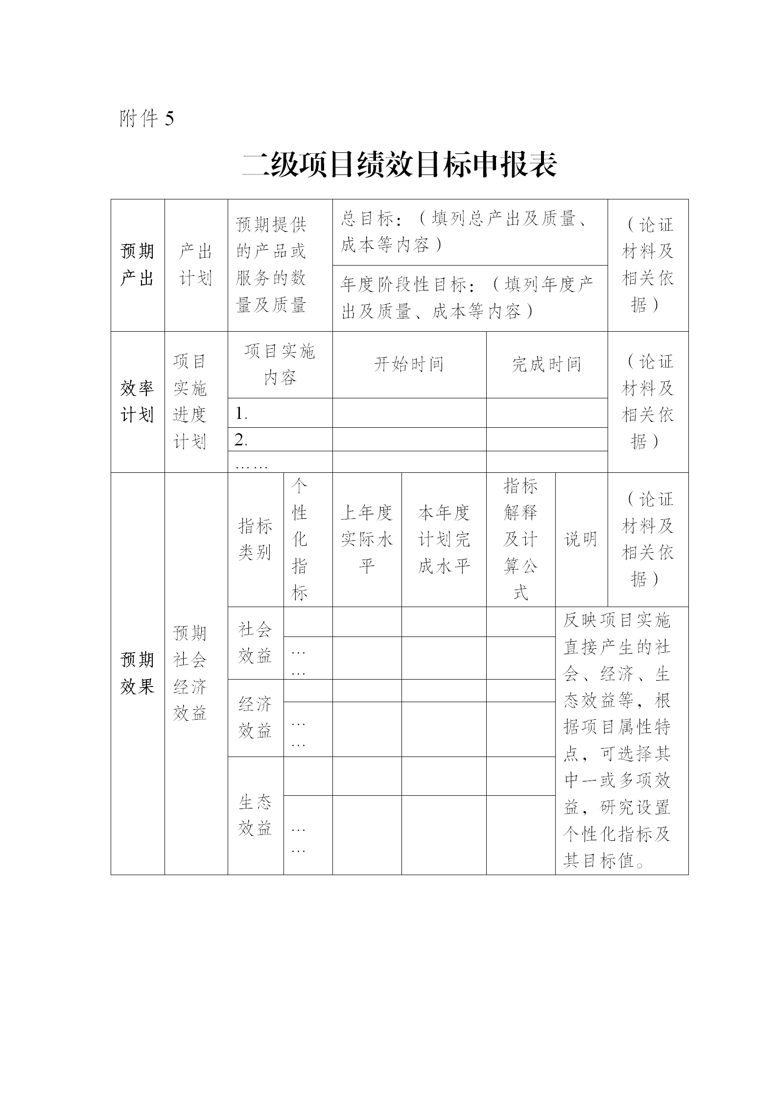 5.二級(jí)項(xiàng)目申報(bào)績效表