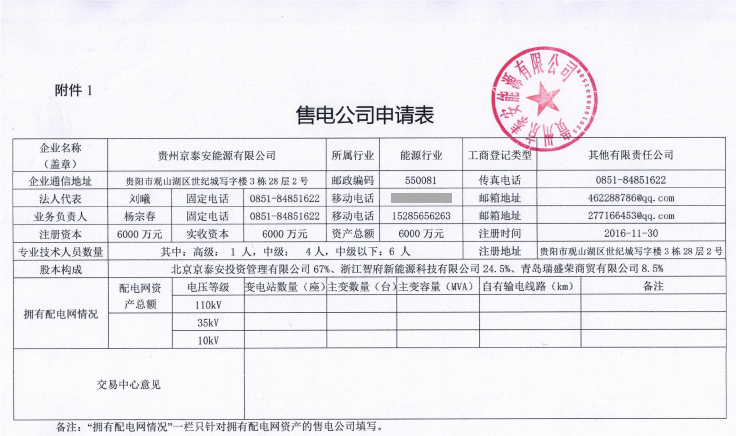 根據(jù)國家發(fā)展改革委、國家能源局印發(fā)的《售電公司準(zhǔn)入與退出管理辦法》(發(fā)改經(jīng)體〔2016〕2120號),以及貴州省能源局、發(fā)改委印發(fā)的《關(guān)于做好售電公司申報工作的通知》(黔能源電力〔2016〕185號)相關(guān)要求,現(xiàn)將滿足售電公司準(zhǔn)入條件的貴州京泰安能源有限公司、貴州烏蒙招商投資服務(wù)有限公司、貴州能惠售電有限公司總計3家企業(yè)相關(guān)信息予以公示,公示期為1個月。公示期滿無異議的售電公司,將納入貴州省自主交易市場主體目錄,按照交易規(guī)則要求參與電力市場化交易。如有異議,可向貴州電力交易中心反映。