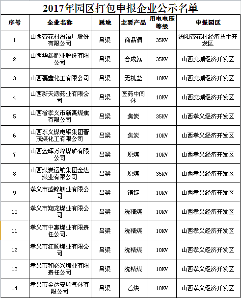 山西擬參加2017年電力直接交易發(fā)用電企業(yè)名單(第一批)的公示