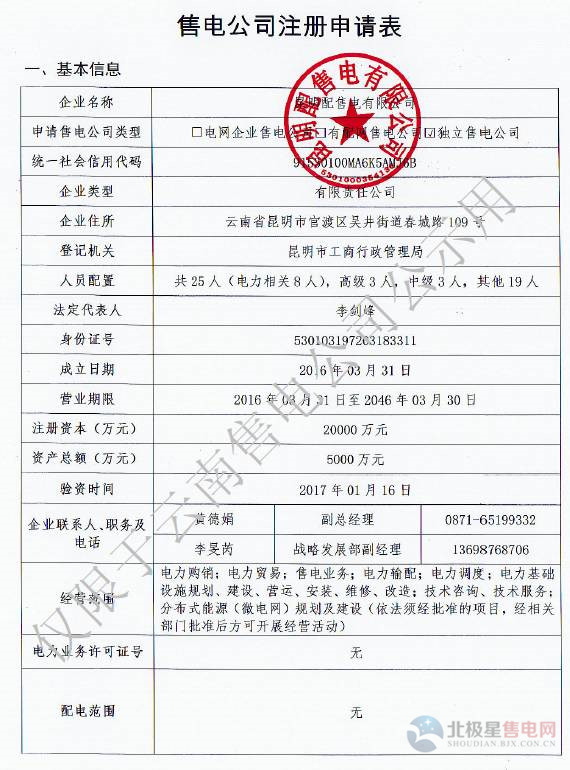 按照國(guó)家發(fā)展改革委、國(guó)家能源局《售電公司準(zhǔn)入與退出管理辦法》(發(fā)改經(jīng)體〔2016〕2120號(hào))、《云南省售電側(cè)改革實(shí)施方案》(云電改辦〔2017〕1號(hào))的要求,昆明電力交易中心受理了下列售電公司的注冊(cè)申請(qǐng),對(duì)售