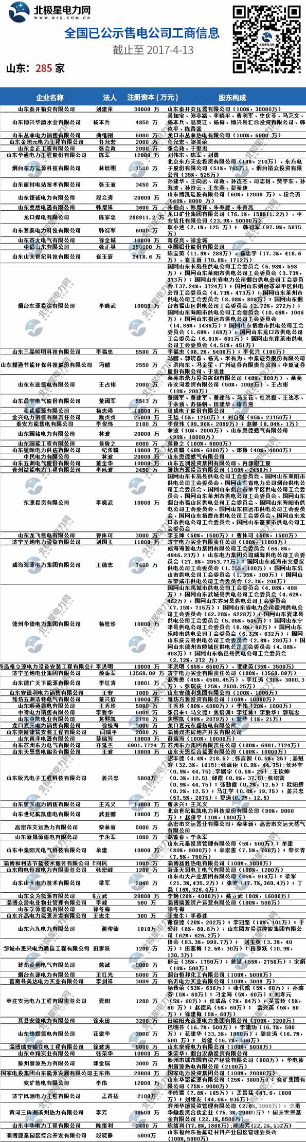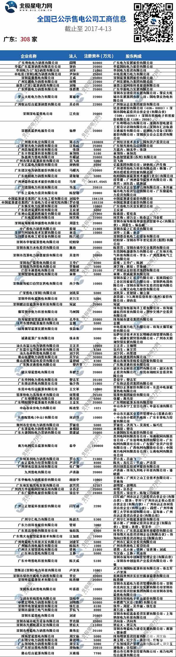 全國已公示1371家售電公司名單(截止2017-4-13)