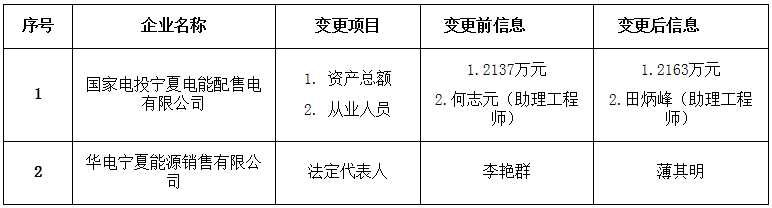 寧夏公示2家注冊信息變更的售電公司